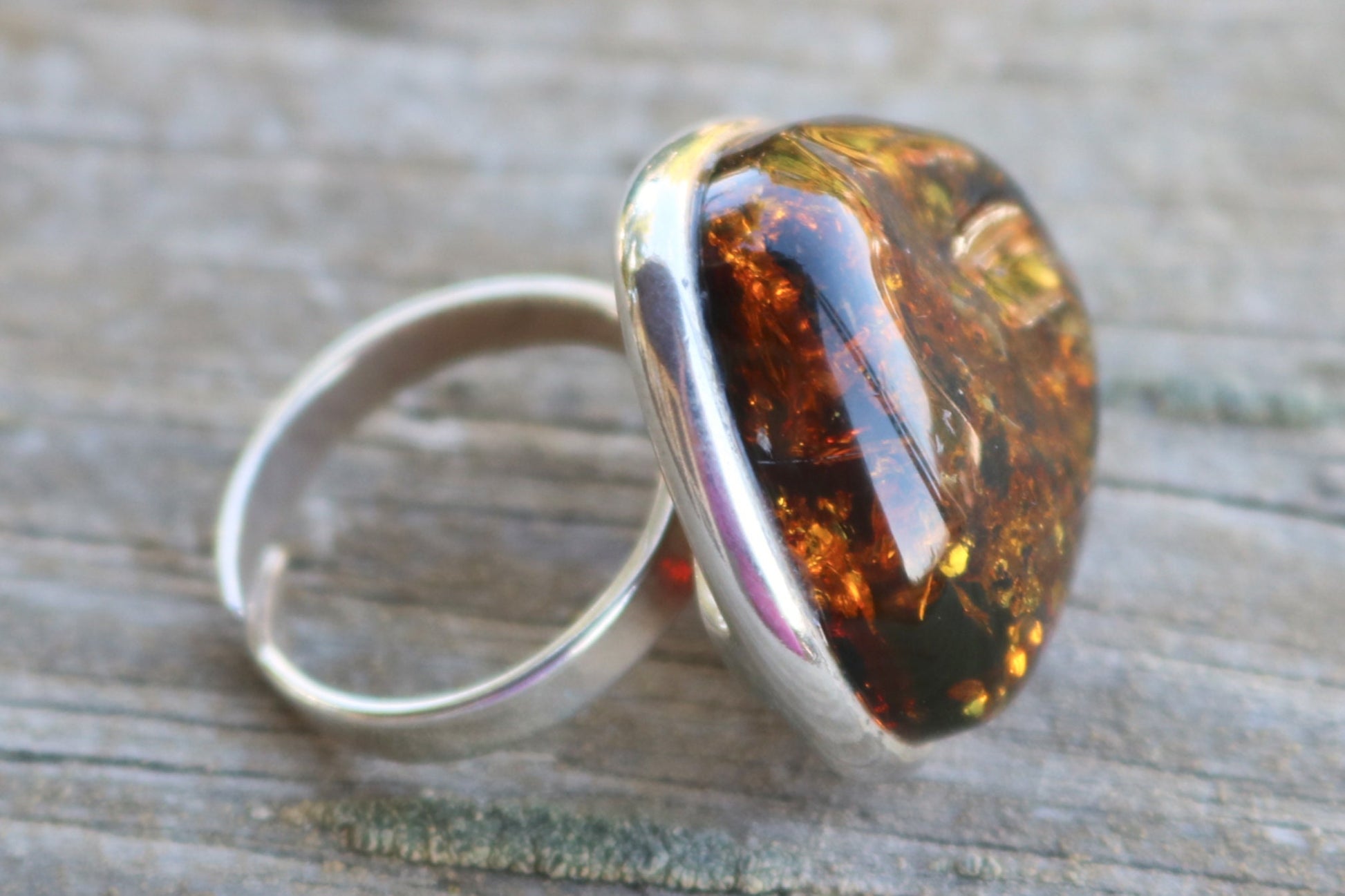 Baltic Amber Ring Green Adjustable Sparkling Jewelry 925 Silver 12 gram