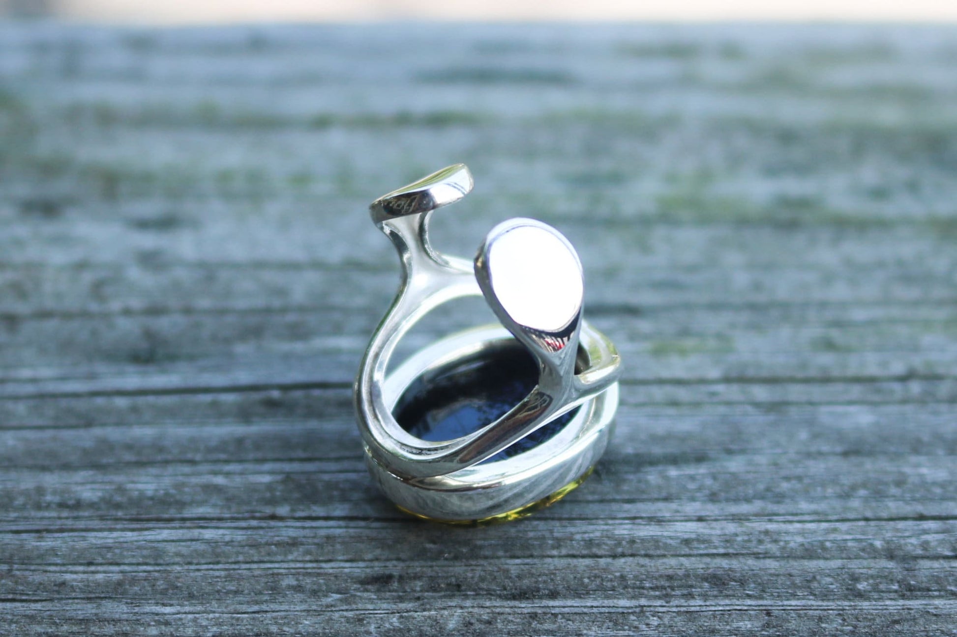 Baltic Amber Ring Green Oval Adjustable Sparkling Jewelry 925 Silver 12.2 gram