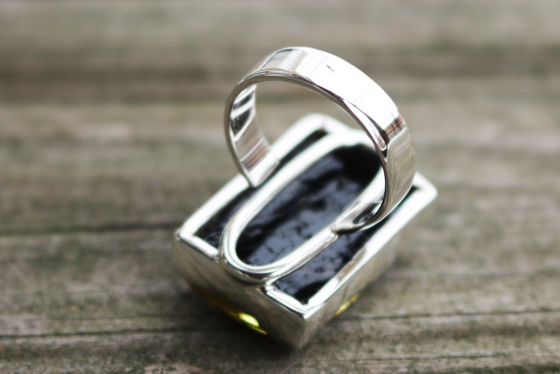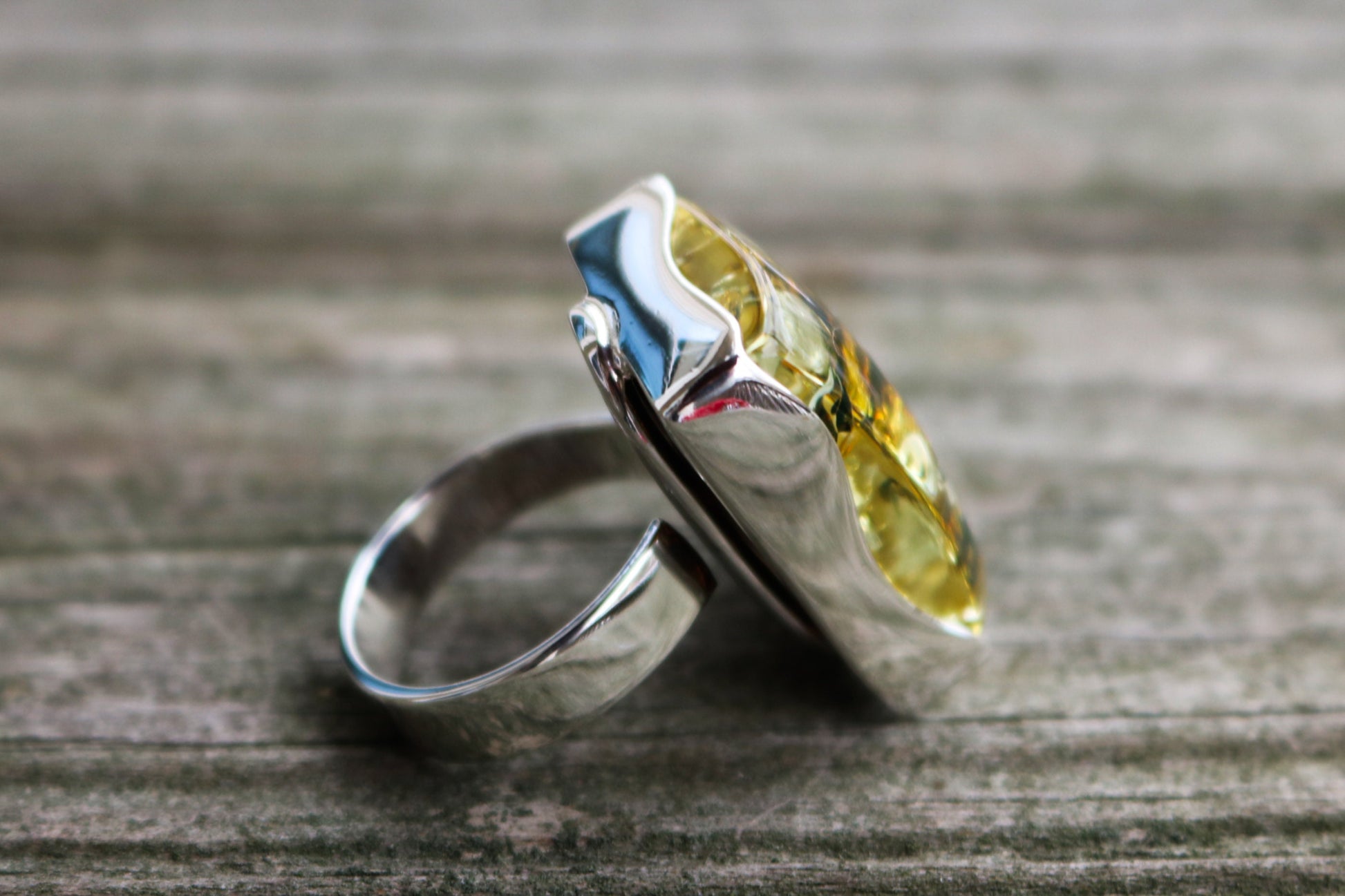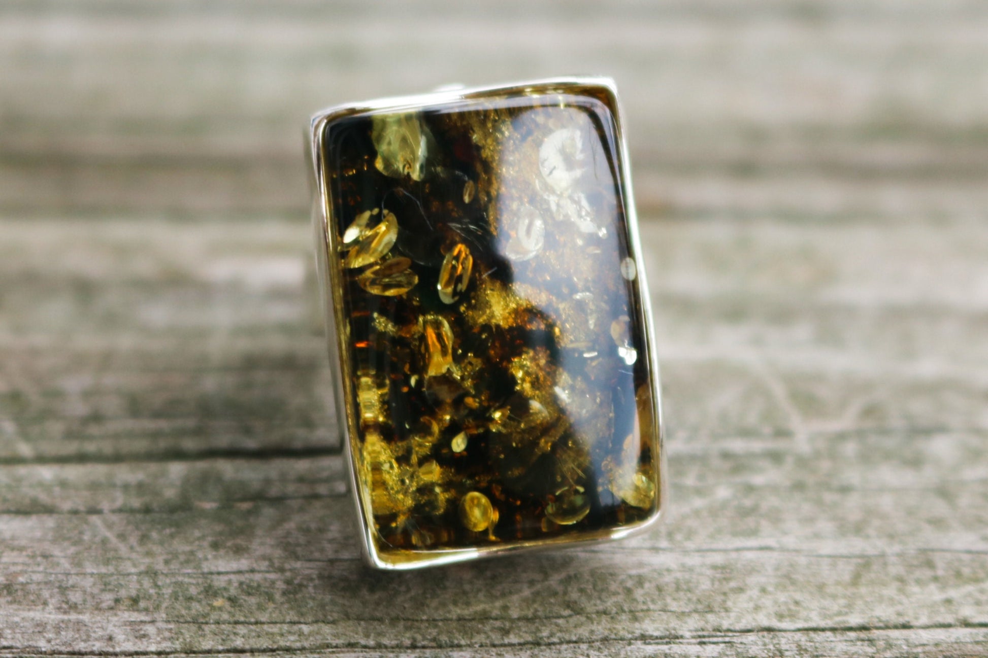 Baltic Amber Ring Green Rectangle Adjustable Unisex 12.3 gram 925 Silver