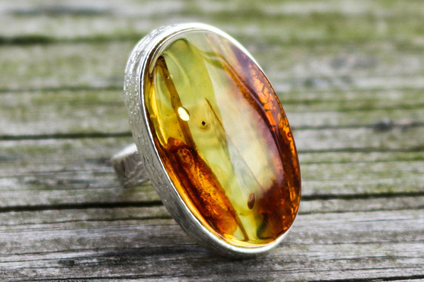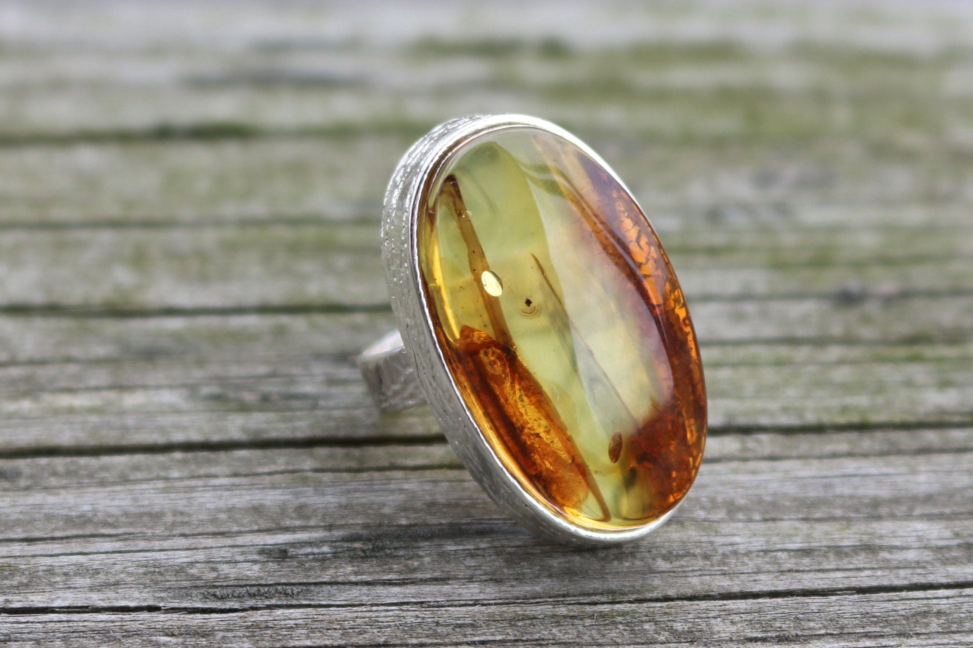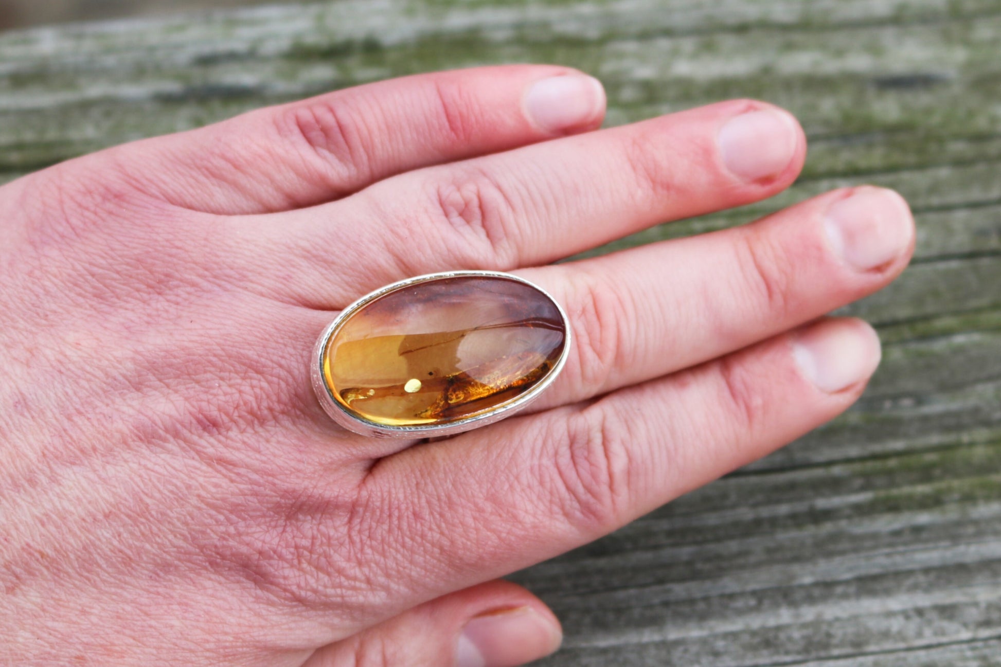 Baltic Amber Ring Yellow Oval Adjustable Untreated Natural Jewelry 925 Silver 14.7 gram