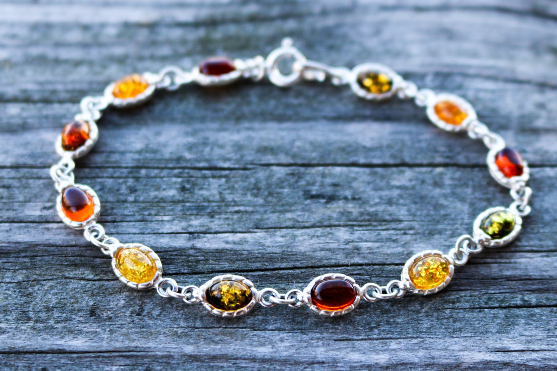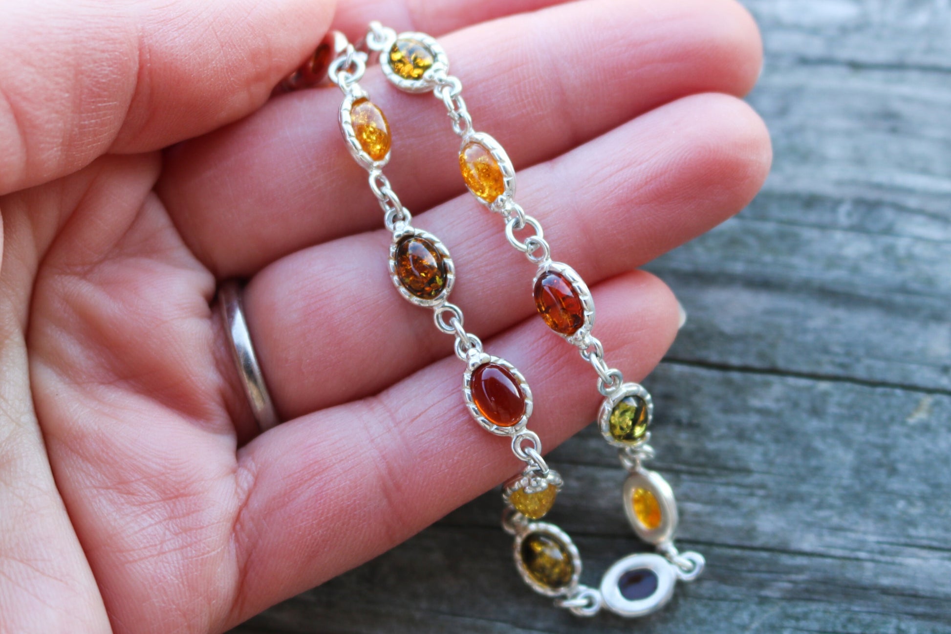 Baltic Amber Silver Bracelet Multicolor 7.7″ 925 Silver