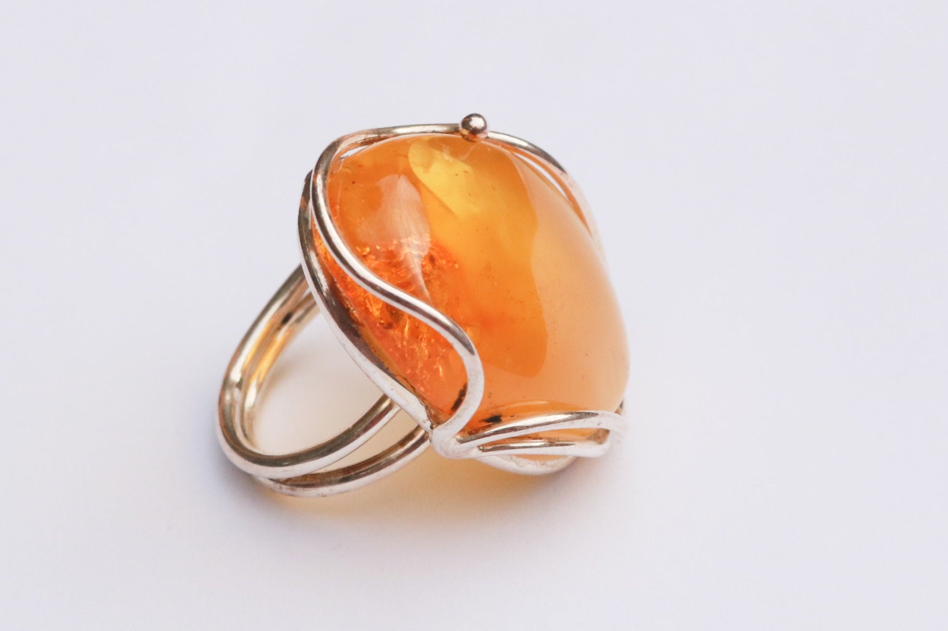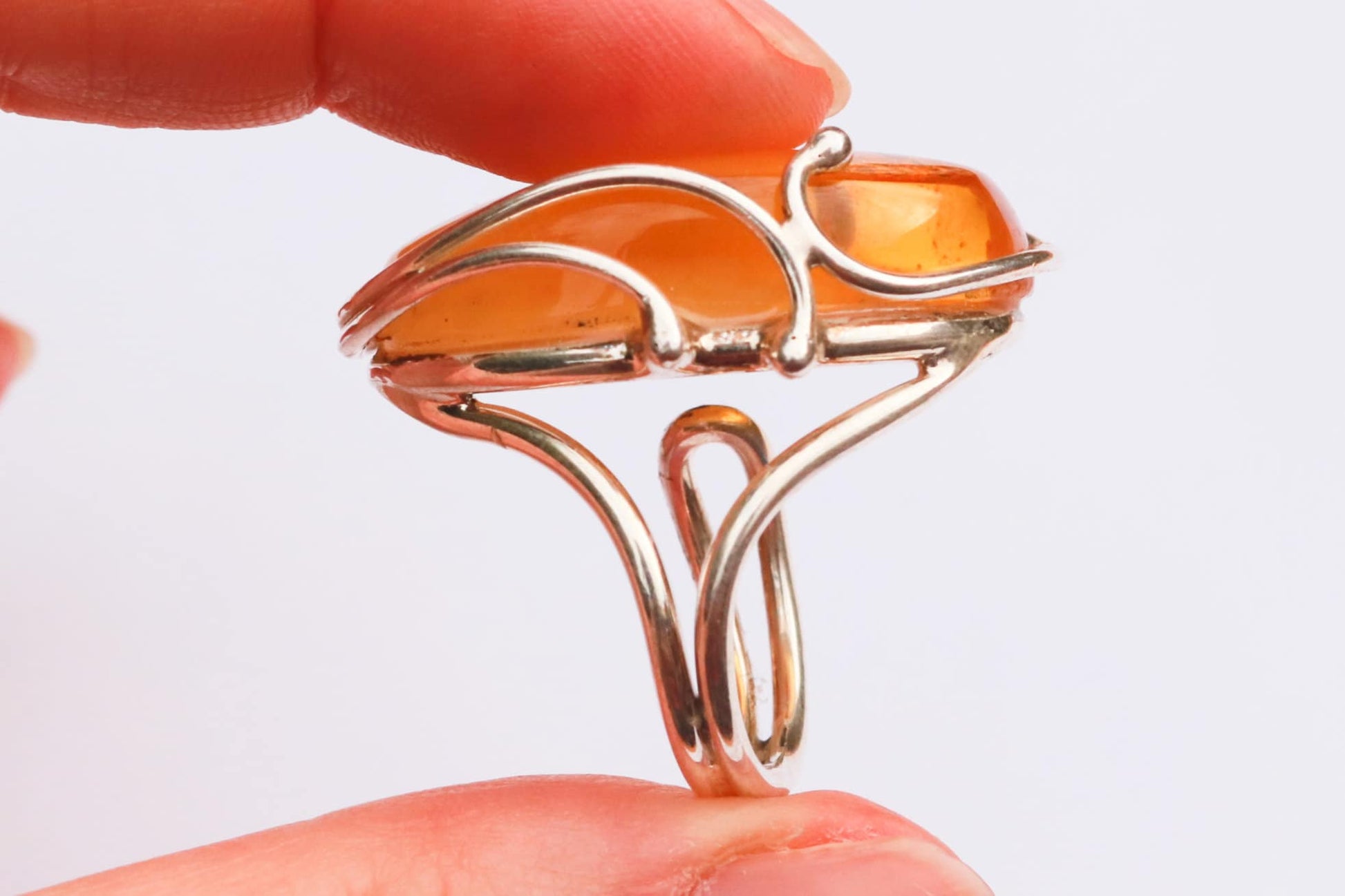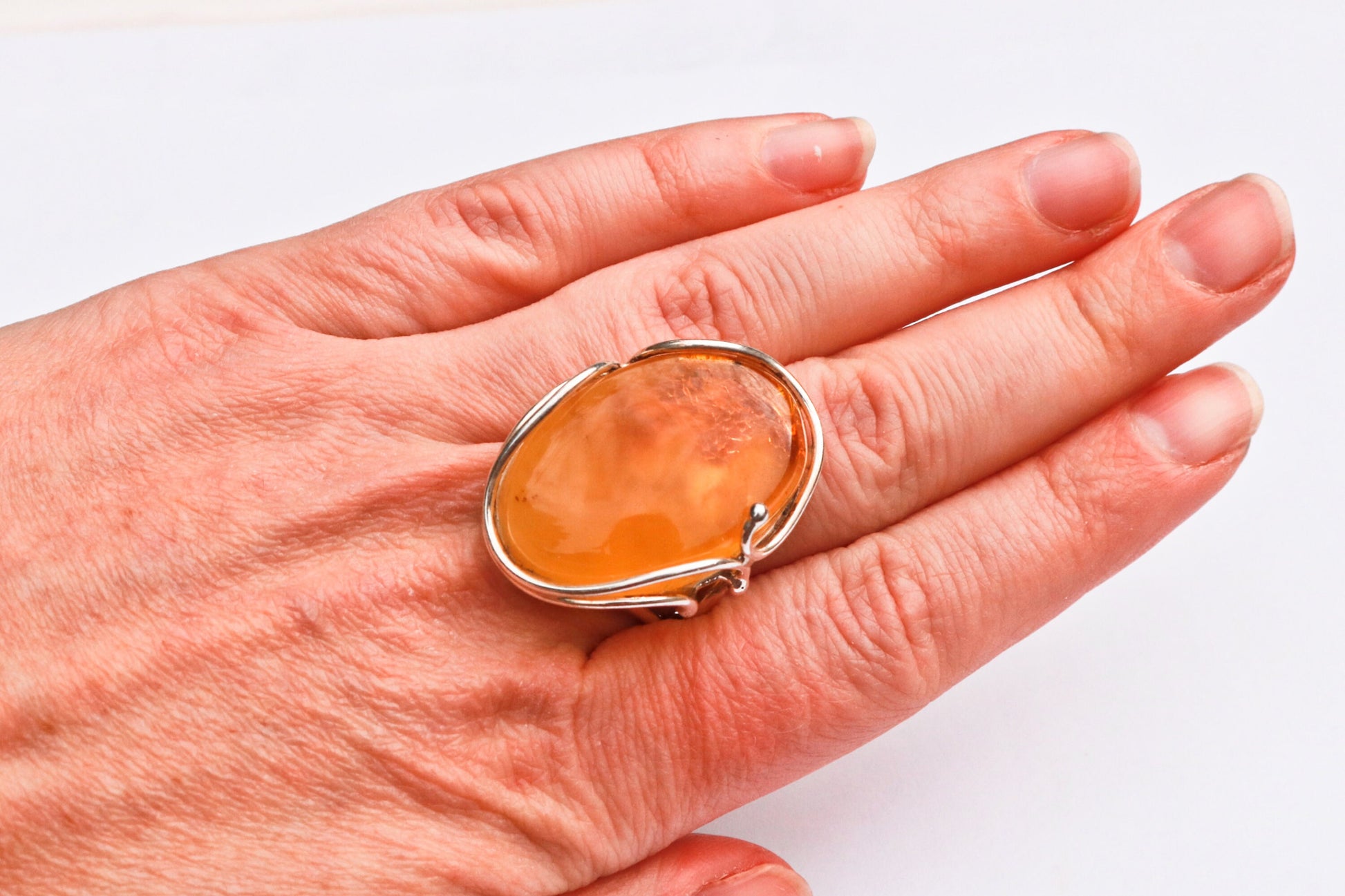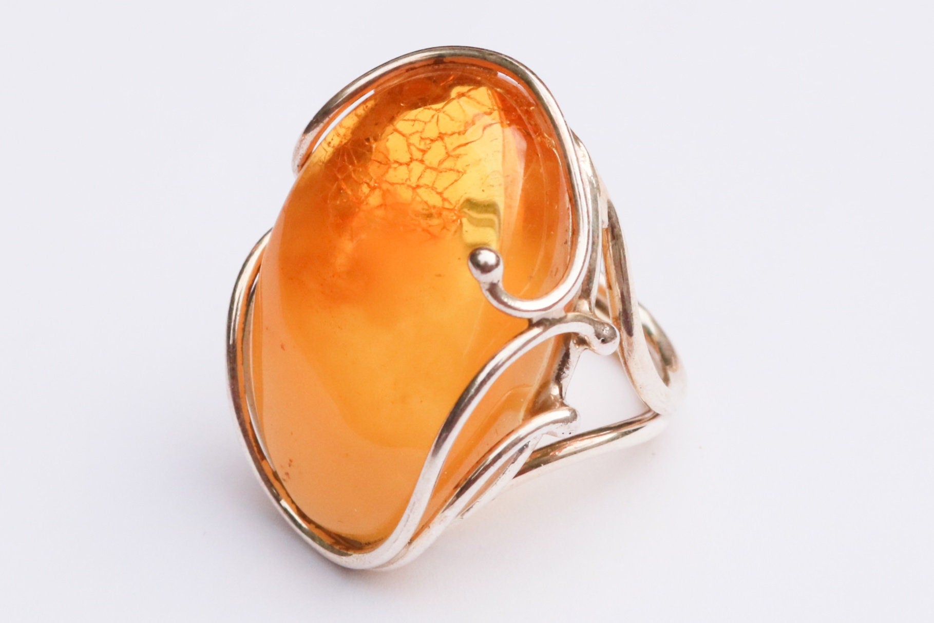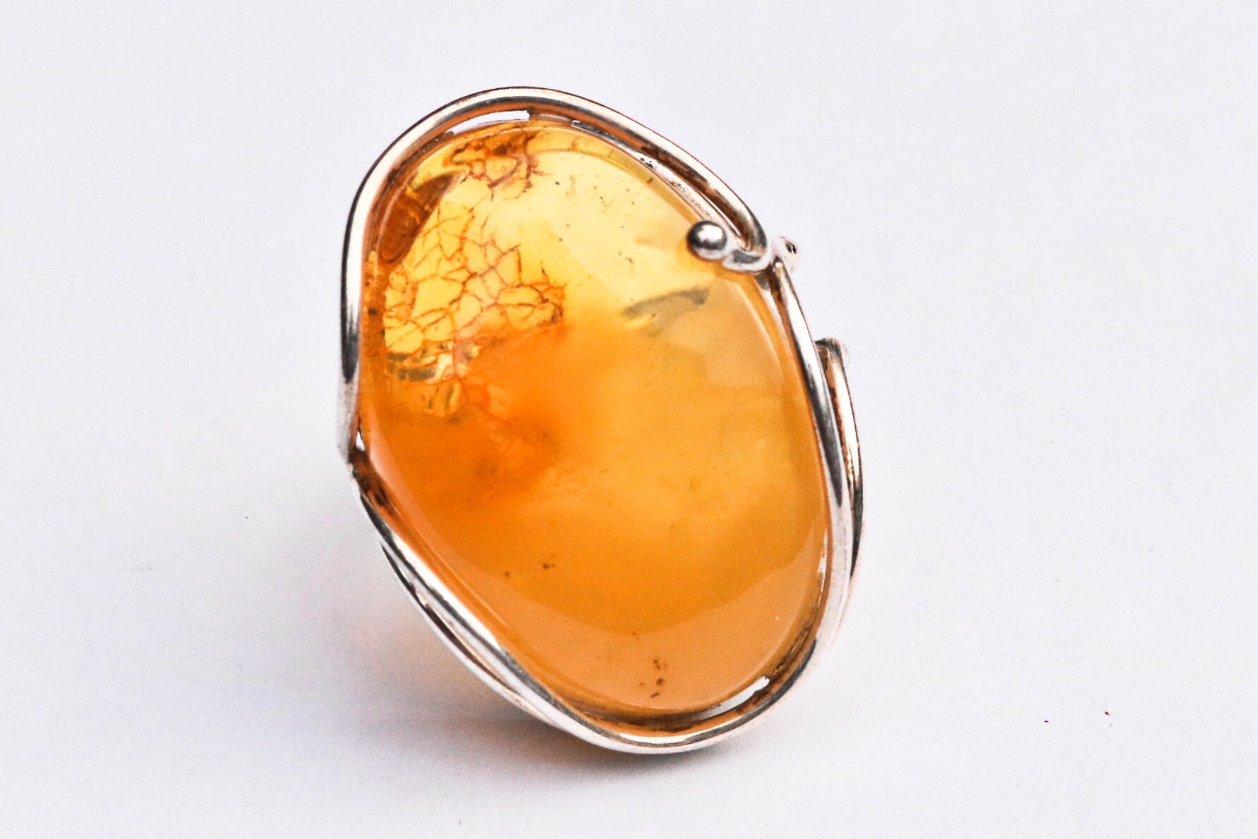 Baltic Amber Yellow Ring Cloudy Adjustable Untreated Natural Oval Jewelry 925 Silver 12.4 gram