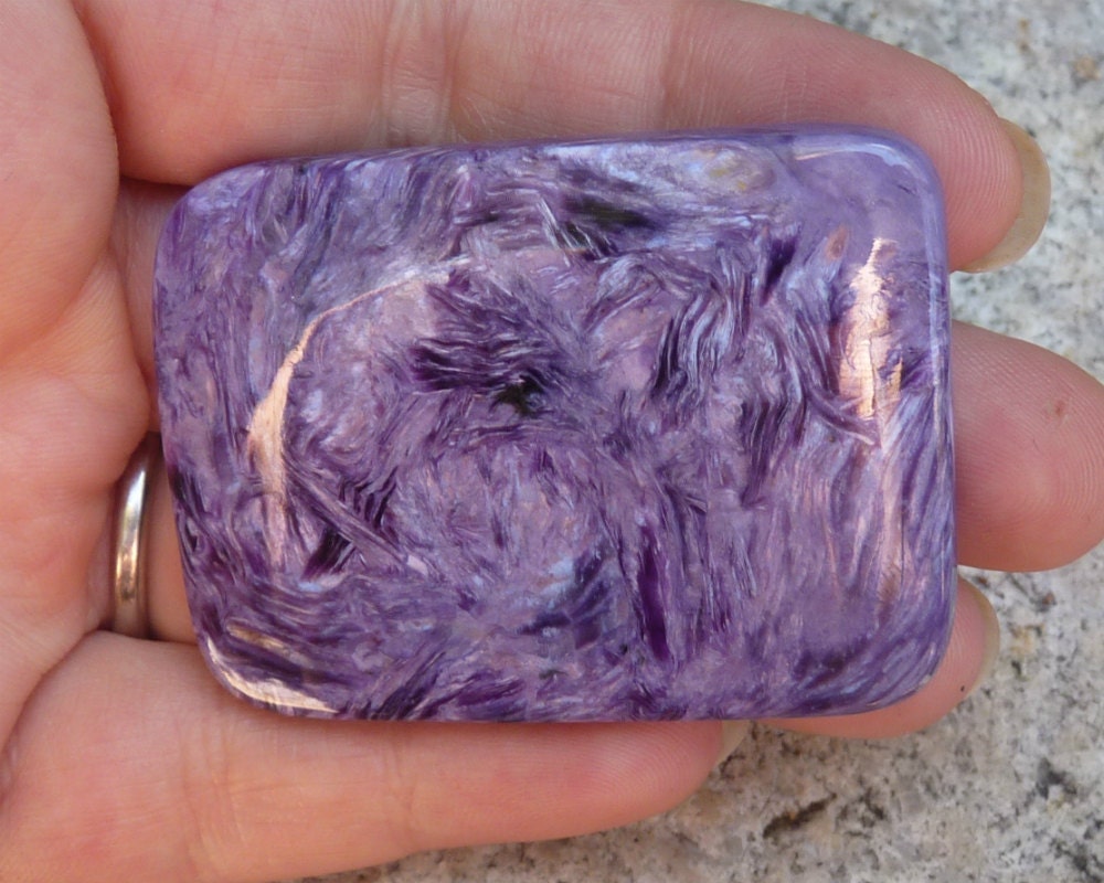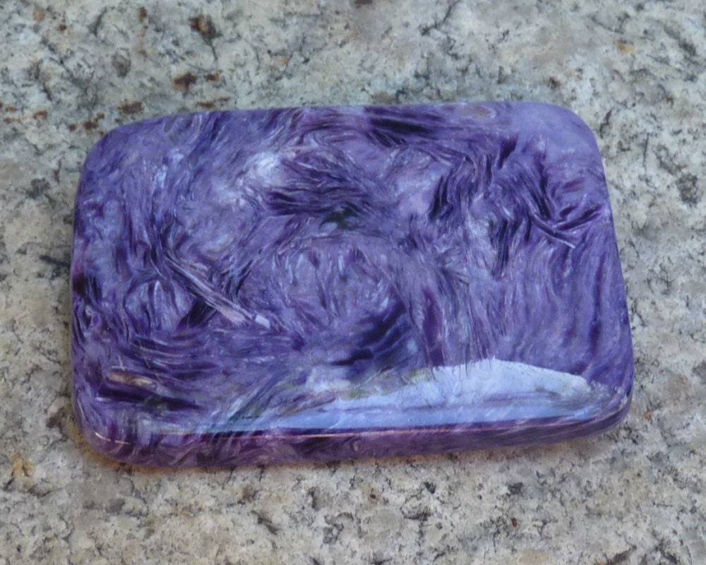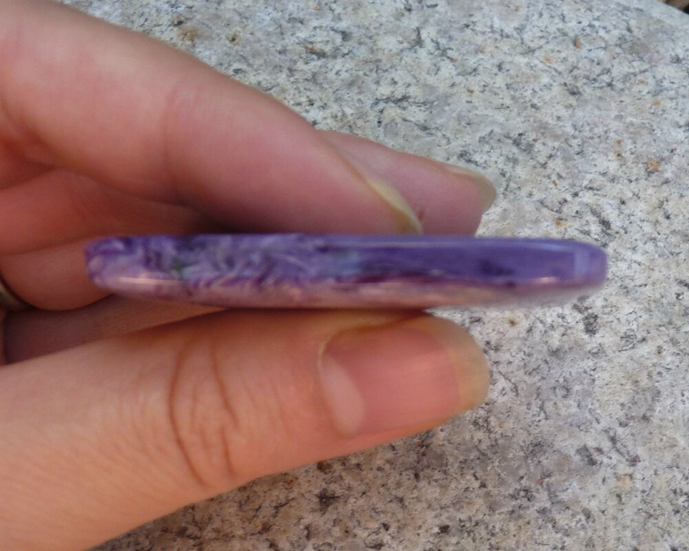 This is highest grade best quality charoite. The stone is polished. It did not undergo any treatment. Gorgeous purple color with very few lighter swirls. Though reportedly discovered in the 1940s, it was not known to the outside world until its description in 1978. It has been reported only from Siberia (Yakutia), Russia.