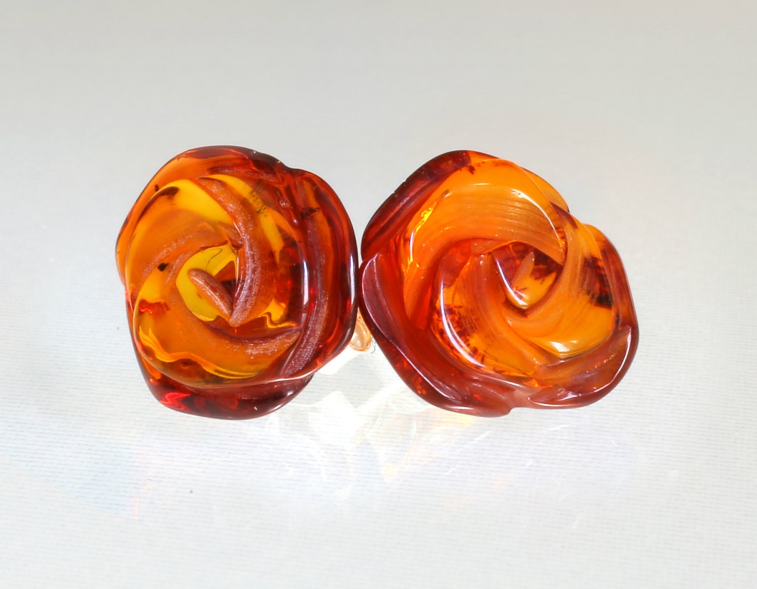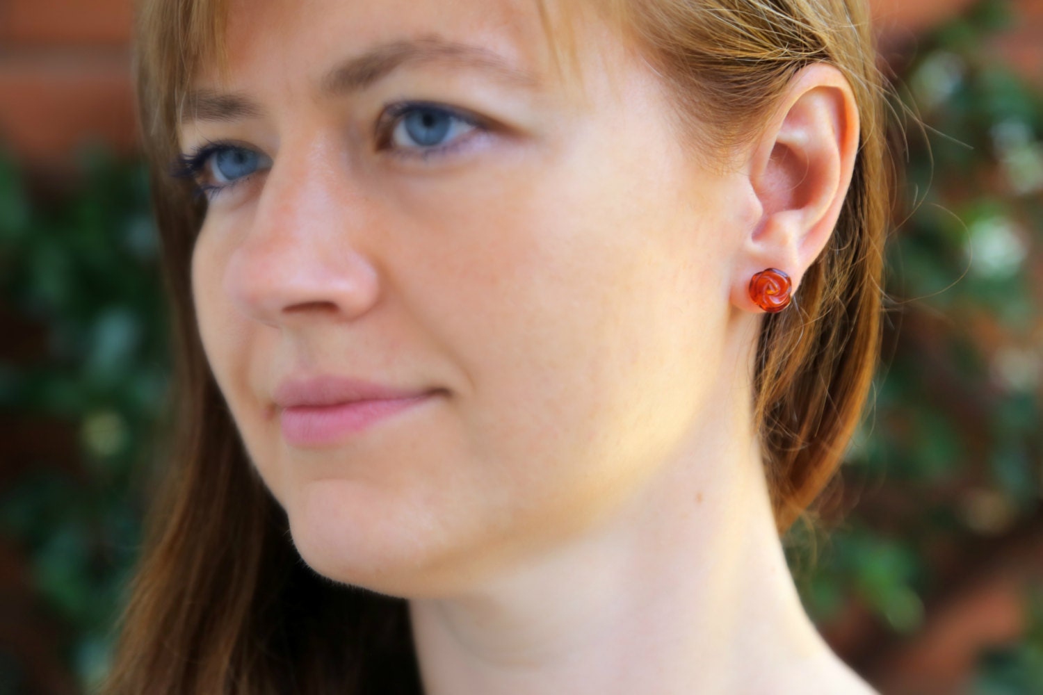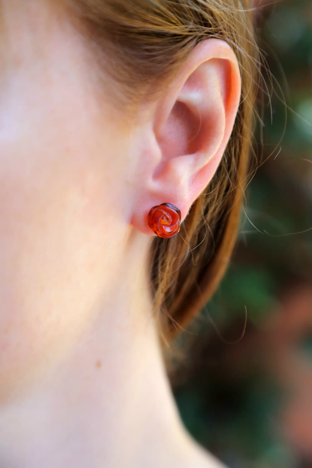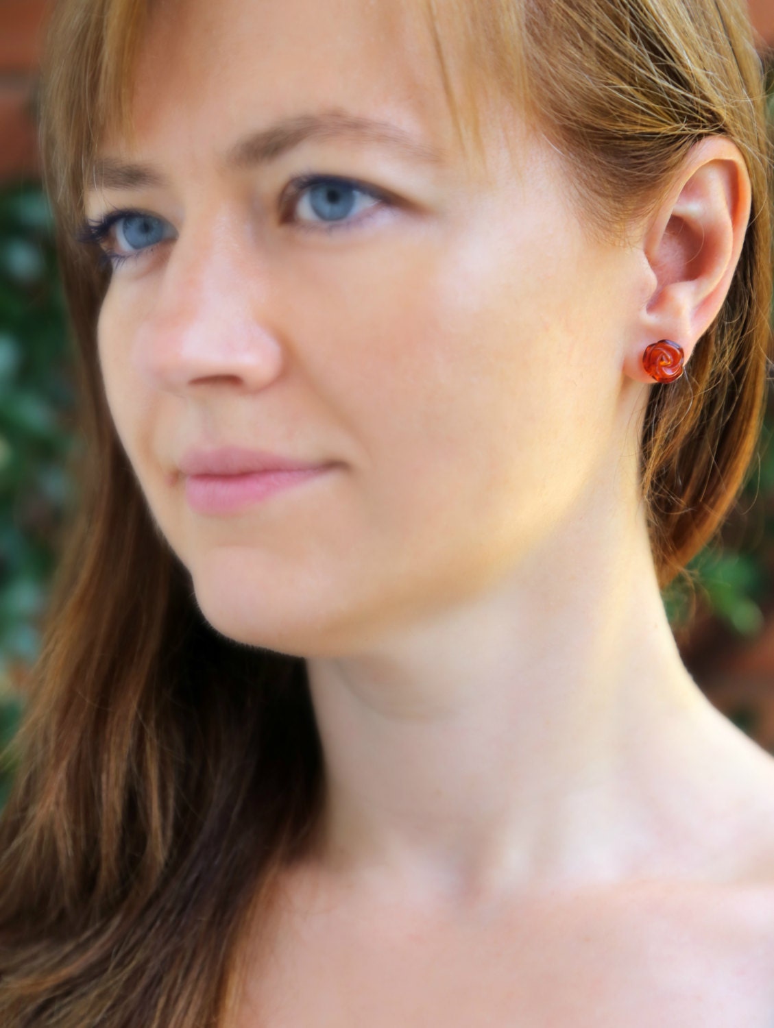 Flower Earrings - Rose Earrings - Rose Stud Earrings - Gift For Her - Baltic Amber Earrings - Cognac Amber Earrings - Flower Jewelry