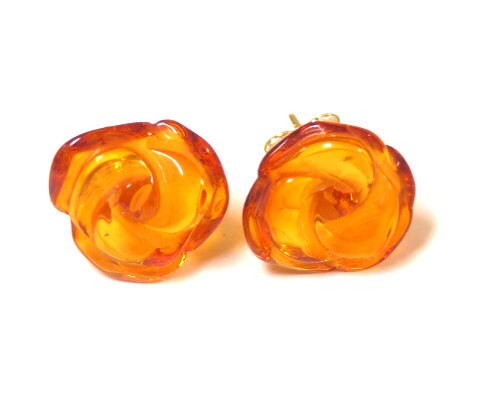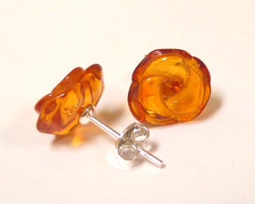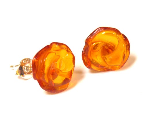 Flower Earrings - Rose Earrings - Rose Stud Earrings - Gift For Her - Baltic Amber Earrings - Honey Amber Earrings - Flower Jewelry