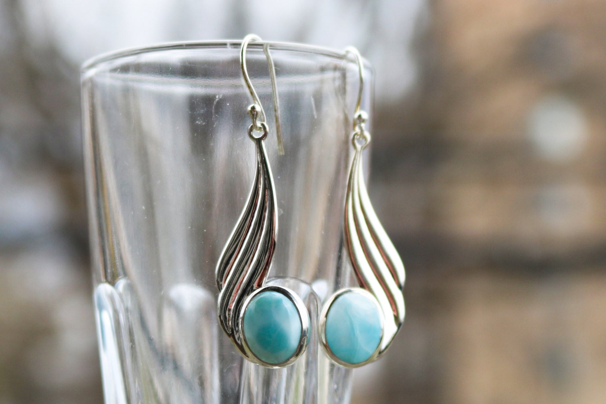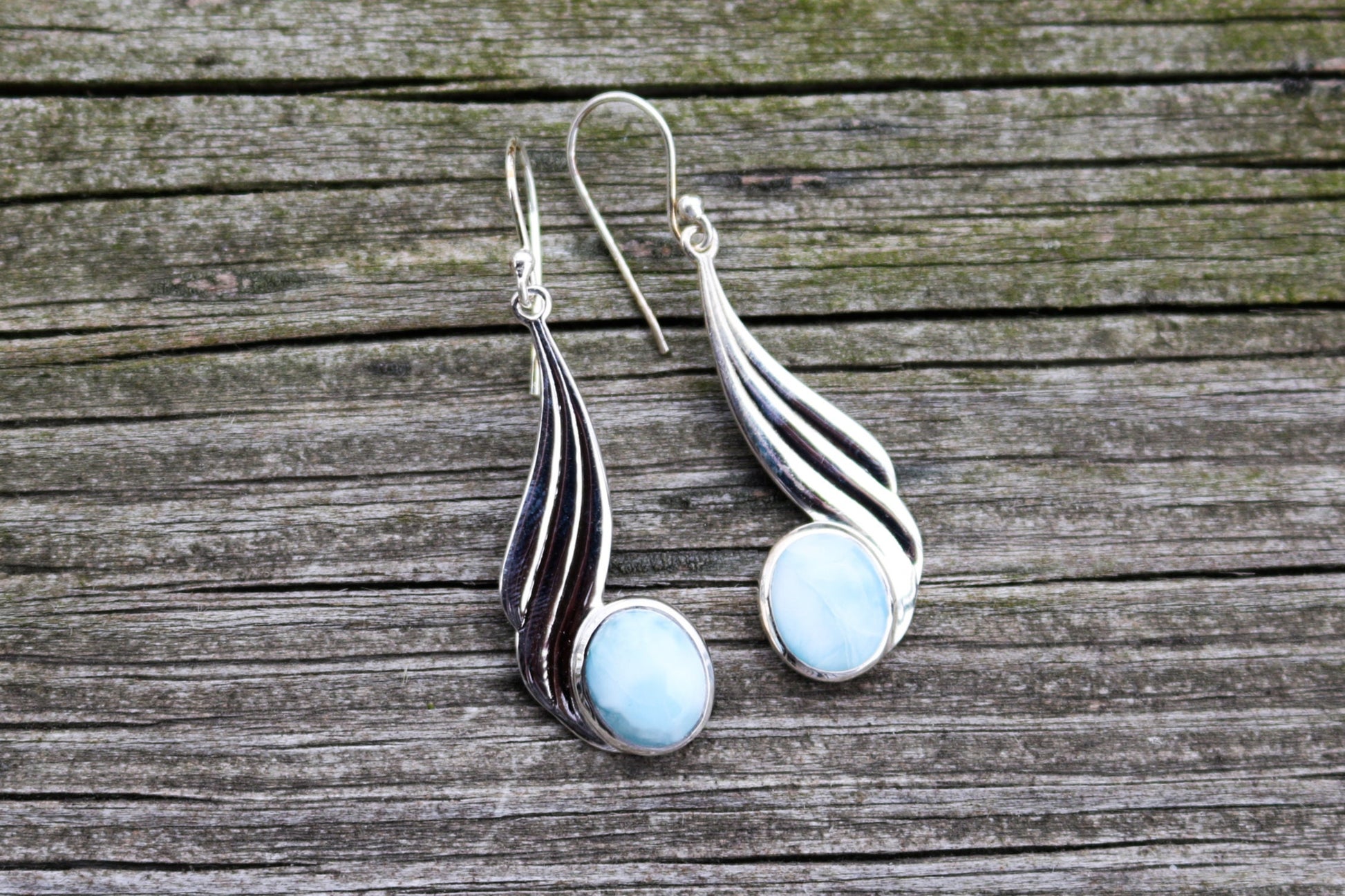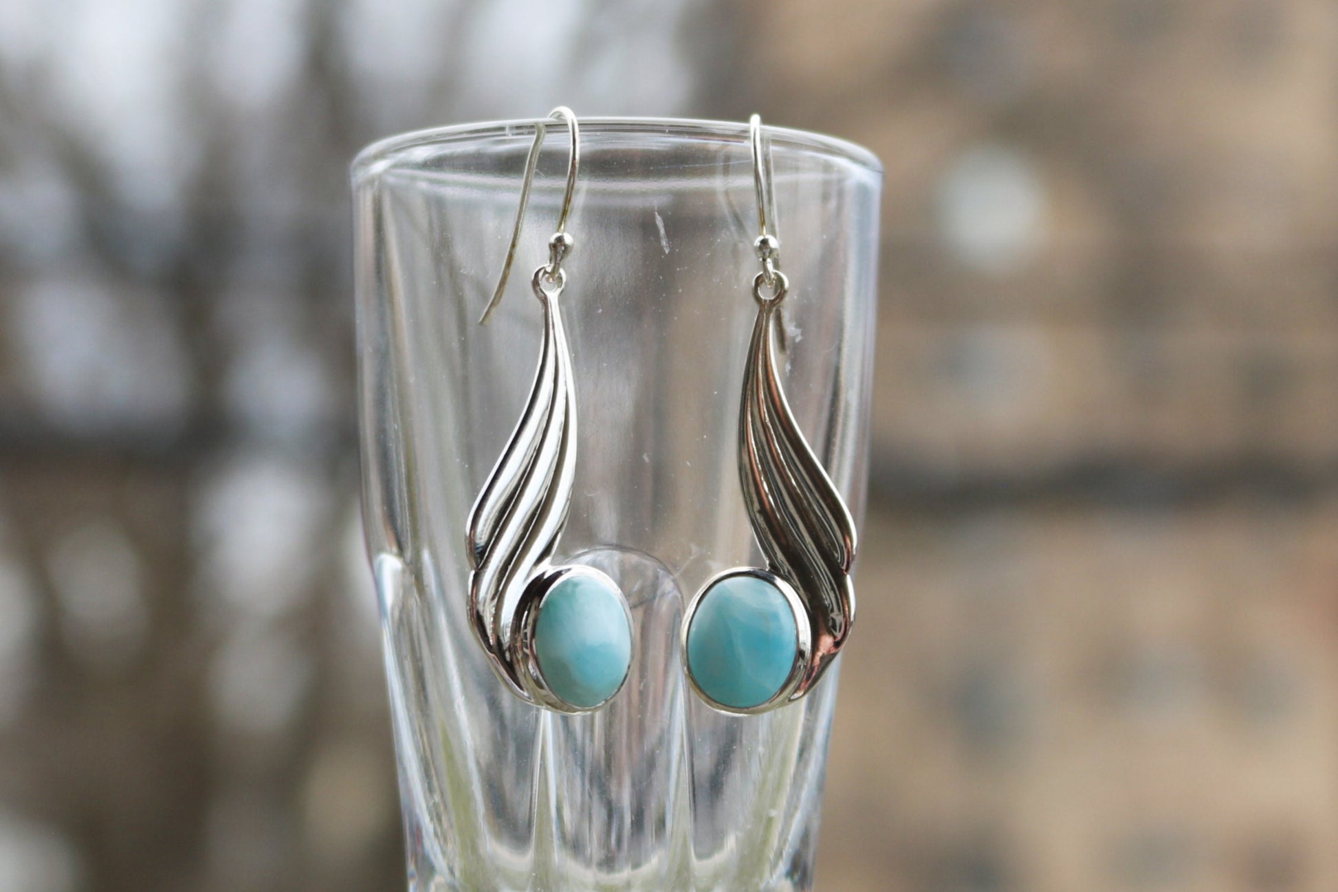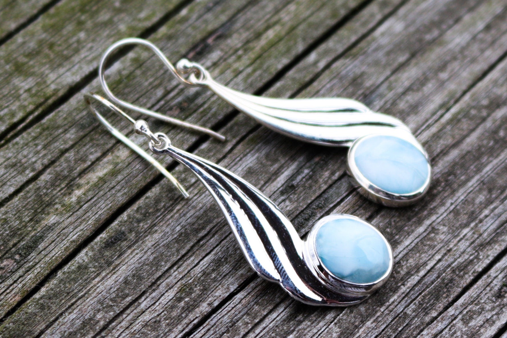 Larimar Earrings Dominican Dangle Blue Ocean Summer 1.9" 6.1 gram 925 Silver