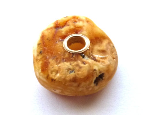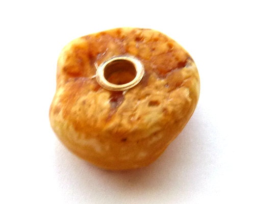 Raw untreated butterscotch amber charm bead; slightly polished, opaque, not shiny. It has natural inclusions and imperfections typical for untreated amber.